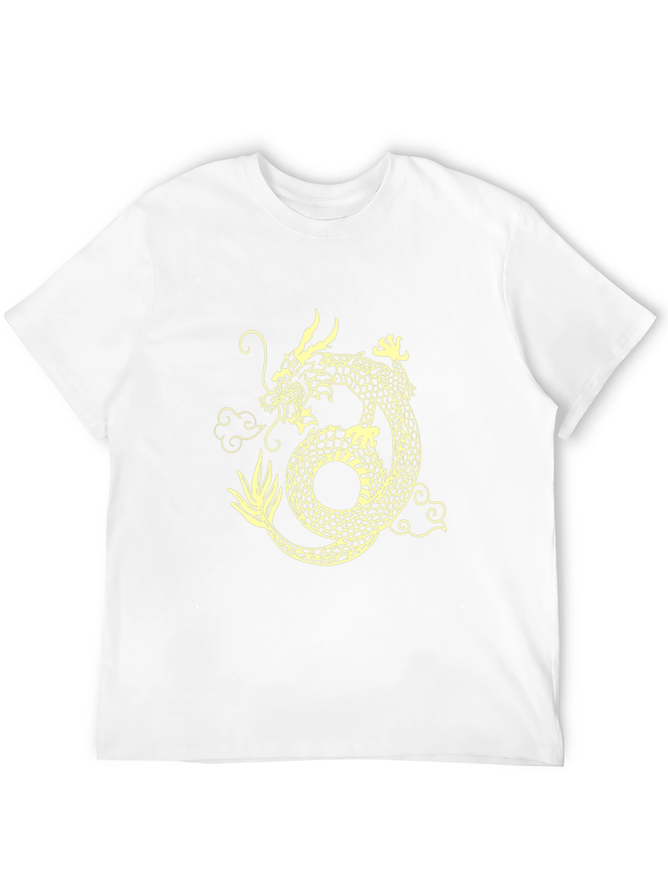 Showcase your style with this striking black t-shirt featuring a bold, stylized dragon graphic. The design is prominently displayed on the front, offering an eye-catching look. Made from a comfortable cotton blend, this tee is soft, breathable, and perfect for everyday wear. The classic crew neck and short sleeves provide a relaxed fit, making it ideal for casual outings, concerts, or lounging at home. Durable construction ensures long-lasting wear and easy care. Add a touch of mythical flair to your wardrobe with this unique and versatile t-shirt.