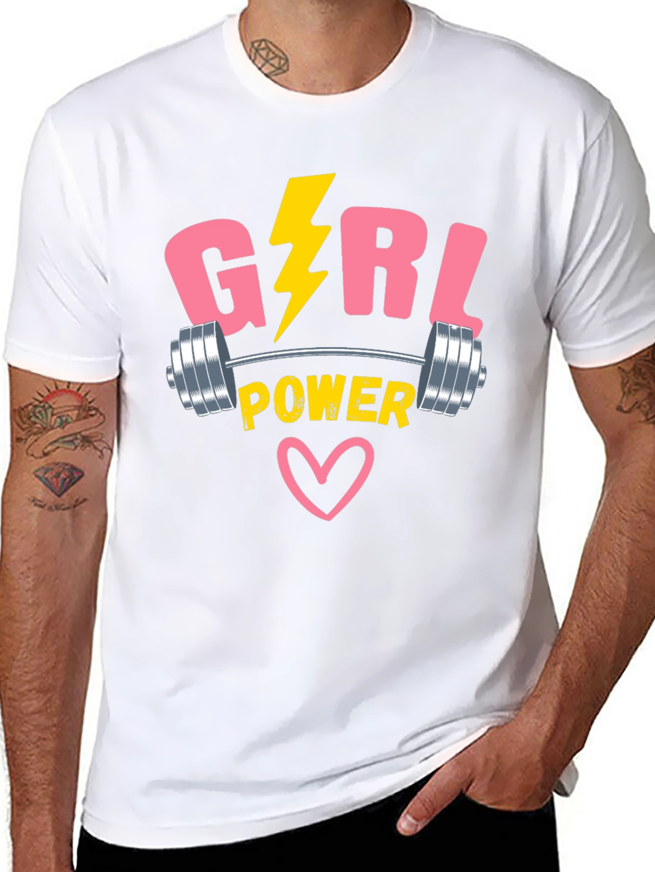 Show off your strength with this stylish "Girl Power" t-shirt. This bold design features a vibrant lightning bolt accent, a barbell graphic, and a heart. The words 'Girl' and 'Power' in block letters create a striking statement. Crafted from a comfortable, breathable fabric, this tee is perfect for gym sessions, casual outings, or making a statement. This shirt is designed to empower and inspire, making it an ideal gift for the strong women in your life. Wear your confidence with this unique and eye-catching design!