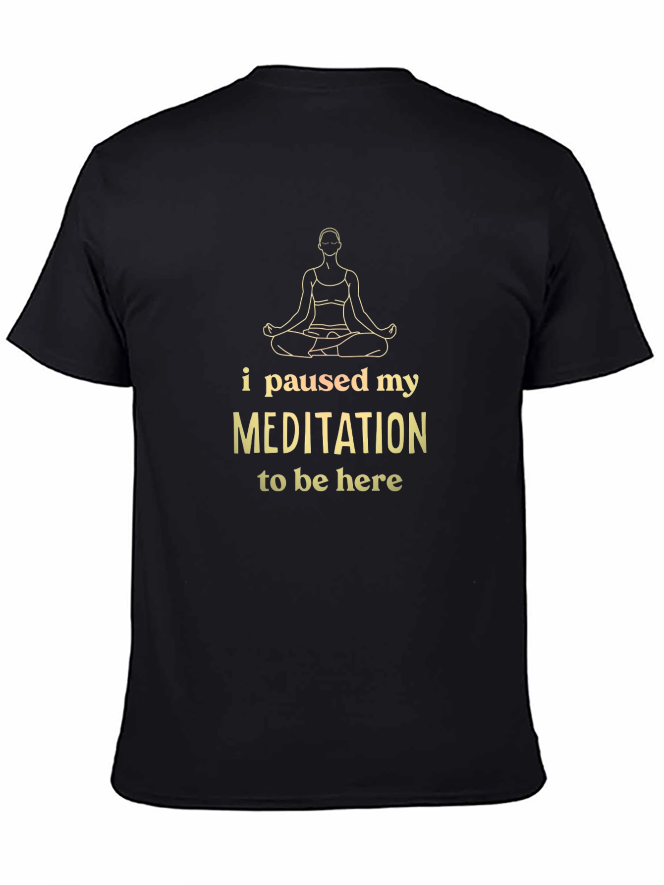 Find your inner peace (or pause it!) with this comfy black t-shirt. Features a graphic of a meditating figure and the humorous phrase "I paused my MEDITATION to be here." Soft, breathable fabric makes it perfect for casual wear, yoga class, or lounging at home. A fun conversation starter for anyone who loves meditation, yoga, or just a good laugh. Show off your mindful side with this unique t-shirt. Makes a great gift!