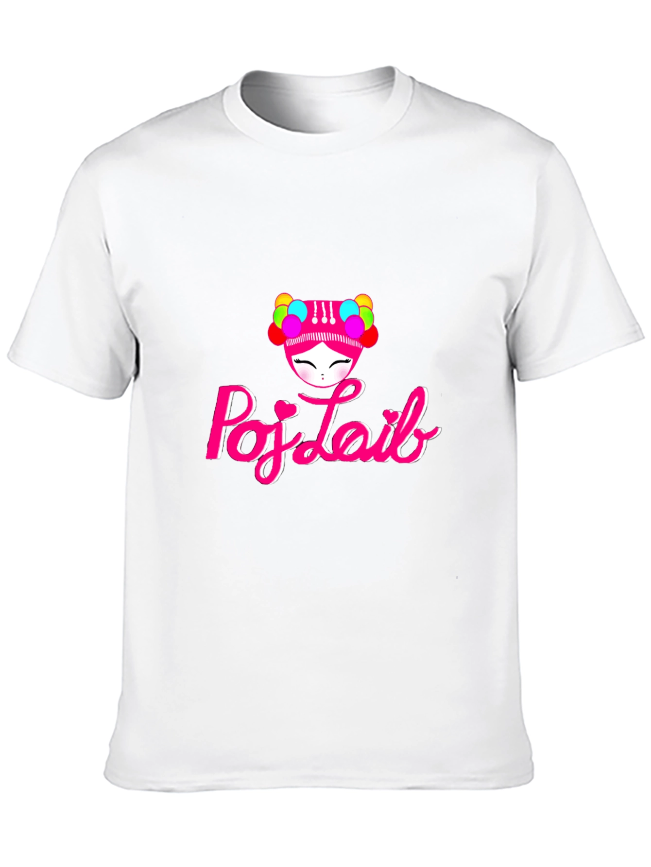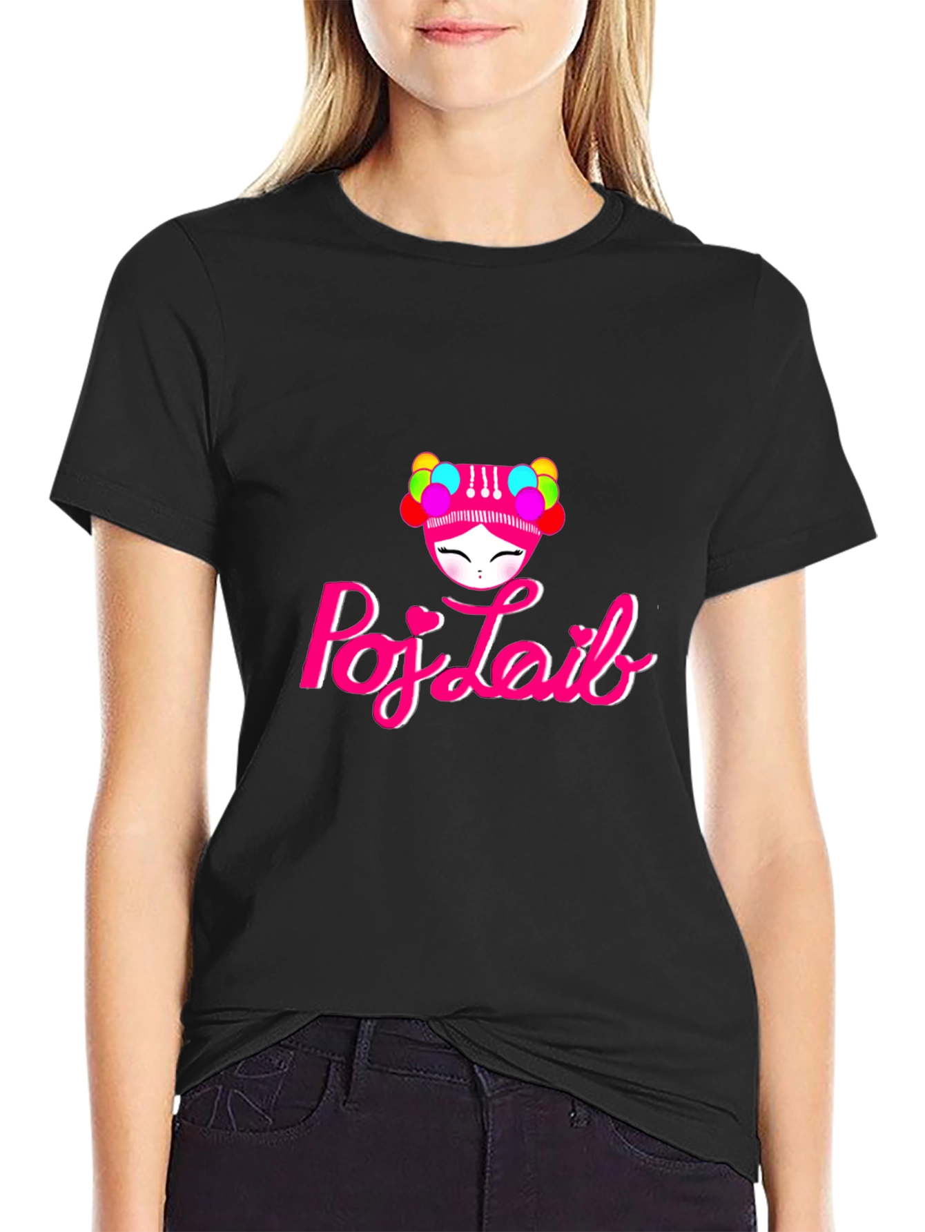 Show off your unique style with this eye-catching black t-shirt. This tee features a colorful, whimsical graphic of a stylized Asian woman with an adorable pink 'Poj-Laib' text. Made from a soft and comfortable cotton blend, this shirt is perfect for casual wear. The vibrant design is sure to turn heads and make a statement wherever you go. It's a fantastic addition to any wardrobe and makes a thoughtful gift for those who appreciate distinctive, playful art. Whether you're out on the town or lounging at home, this t-shirt offers both comfort and style. Grab yours today and express your individuality!