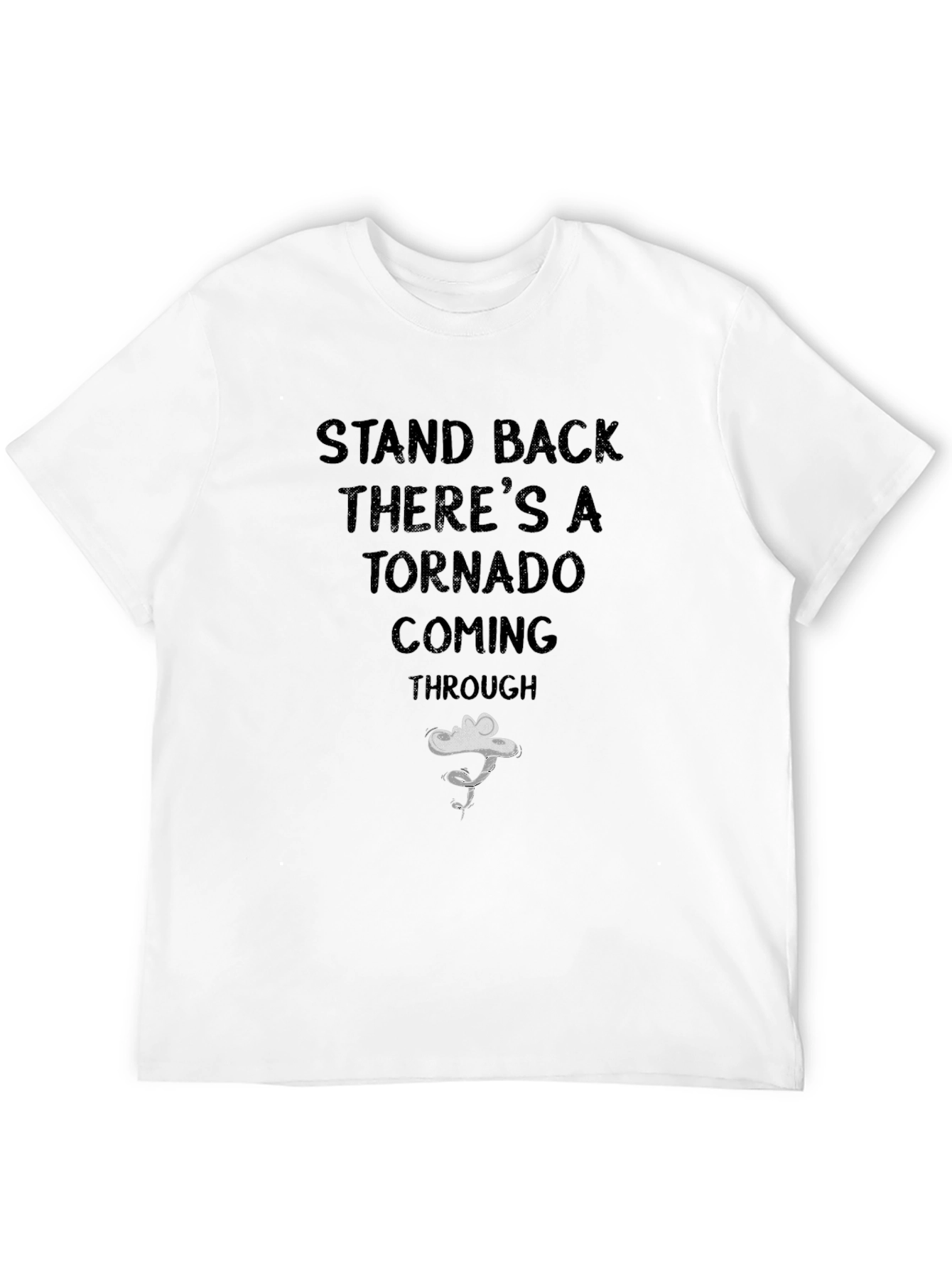 This classic black t-shirt features a bold and humorous design. The statement "STAND BACK THERE'S A TORNADO COMING THROUGH" is printed in a clear font, paired with a distressed tornado graphic, adding a touch of playful warning. Crafted from what appears to be a soft, breathable cotton blend, this tee offers both comfort and style. Ideal for casual wear, social gatherings, or as a fun gift, this shirt is sure to turn heads and spark conversations. Show off your unique sense of humor with this standout piece that combines comfort and a memorable message.